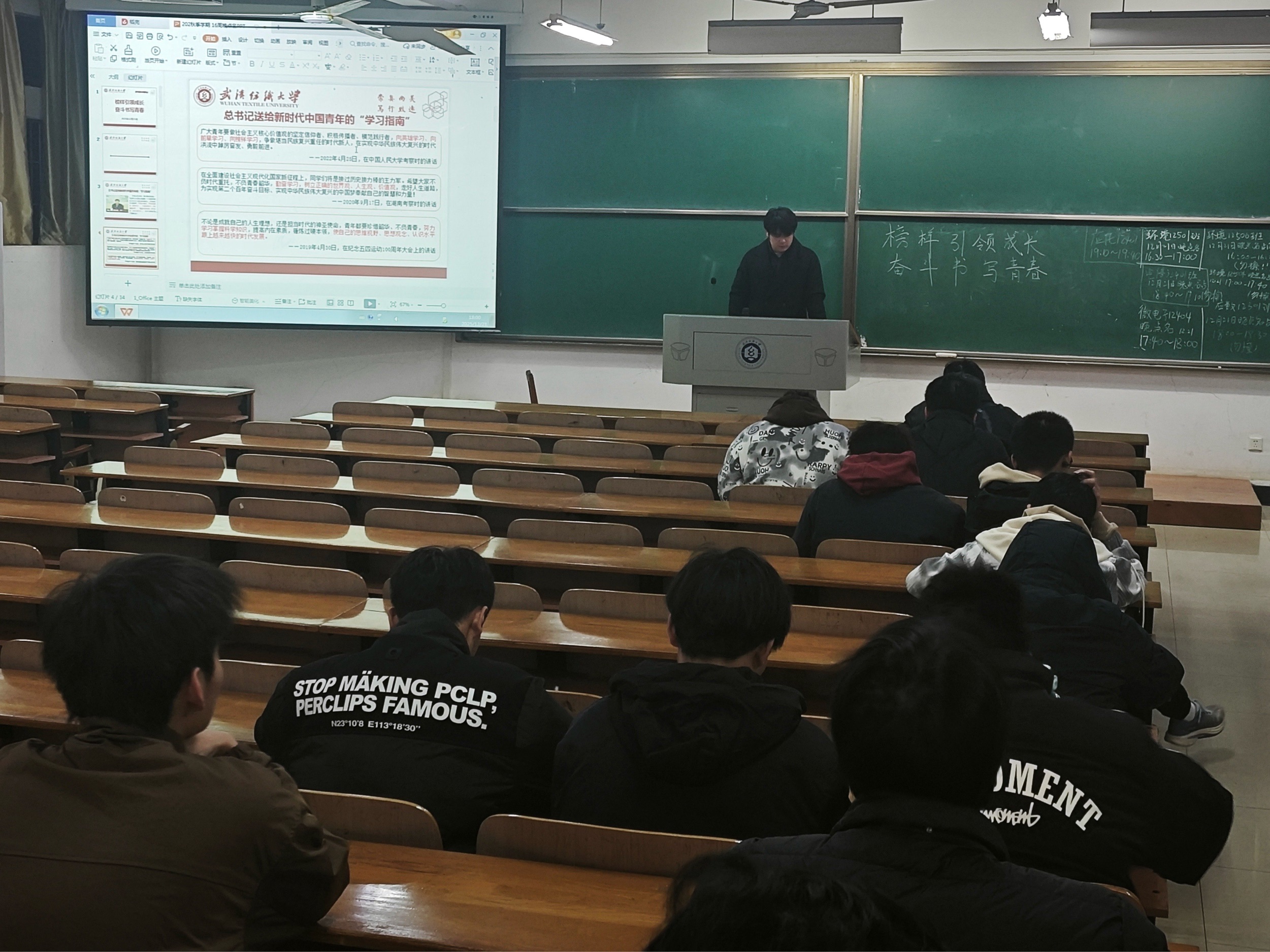 为引导学生汲取榜样力量、明确成长方向,伟德betvlctor1946源于英国于2025年12月21日在崇志楼开展了以“榜样引领成长,奋斗书写青春”为主题的班会活动。此次班会全体同学参加,班会由各班班长主持。