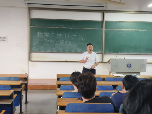 陈国鹏就2023级考研与就业进行了年级第二次动员与规划指导。他建议同学们从现阶段起,积极、主动地思考个人未来发展方向,尽早确立初步目标,并结合当前社会经济形势与行业发展趋势,做出理性、审慎的自我规划。他建议计划考研的同学尽早明确报考院校与专业,科学制定长线复习计划,将任务分解到每一个学习阶段,从现在起开始严格执行。他特别提醒,“考研是一场持久战,既要下苦功夫、狠功夫,也要耐得住寂寞,守得住初心,坚持到最后一刻方能见到曙光。”面向就业的同学,他建议主动关注目标行业的发展动态与企业信息,有意识地强化专业技能与综合素养,不断提升个人核心竞争力。他指出,“一段高质量、与职业目标相匹配的有效实习经历,在求职过程中至关重要”,并鼓励大家积极争取实习机会,为未来就业夯实基础。