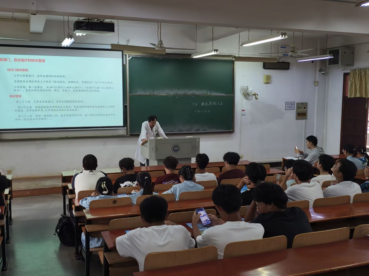 9月28日,我校校医院在崇志楼119教室为数统学院25级新生开展校医院新生入学教育专题讲座,为2025级新生详细讲解医疗保障、就诊流程等关键信息,筑牢新生健康防护屏障。