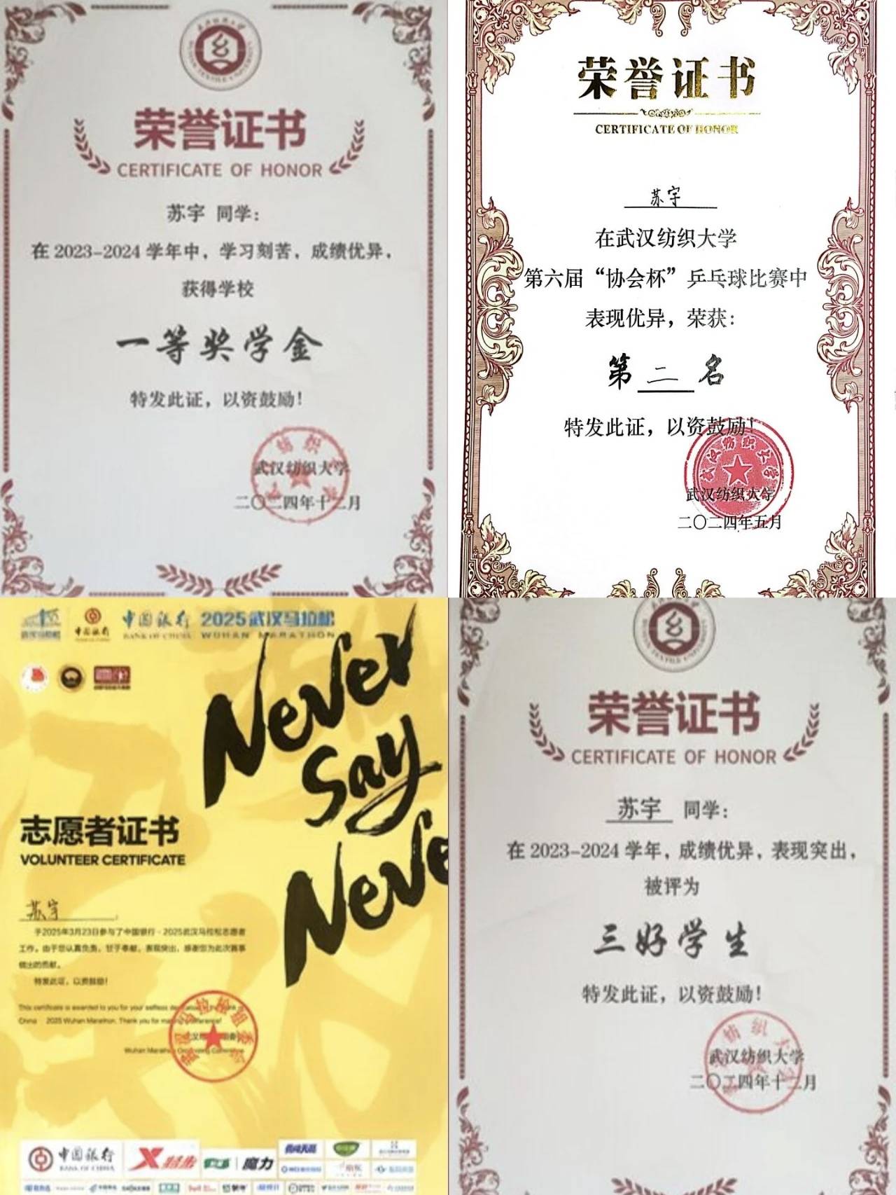 谈及国奖,苏宇有着清晰的认知:“国奖是由绩点、科研、竞赛、伟德国际、志愿活动、思想六维构成,是系统战而非单科战。”这份荣誉对她而言,既是对过去努力的肯定,更是未来前行的动力,激励着她在追求卓越的道路上不断奋进。
