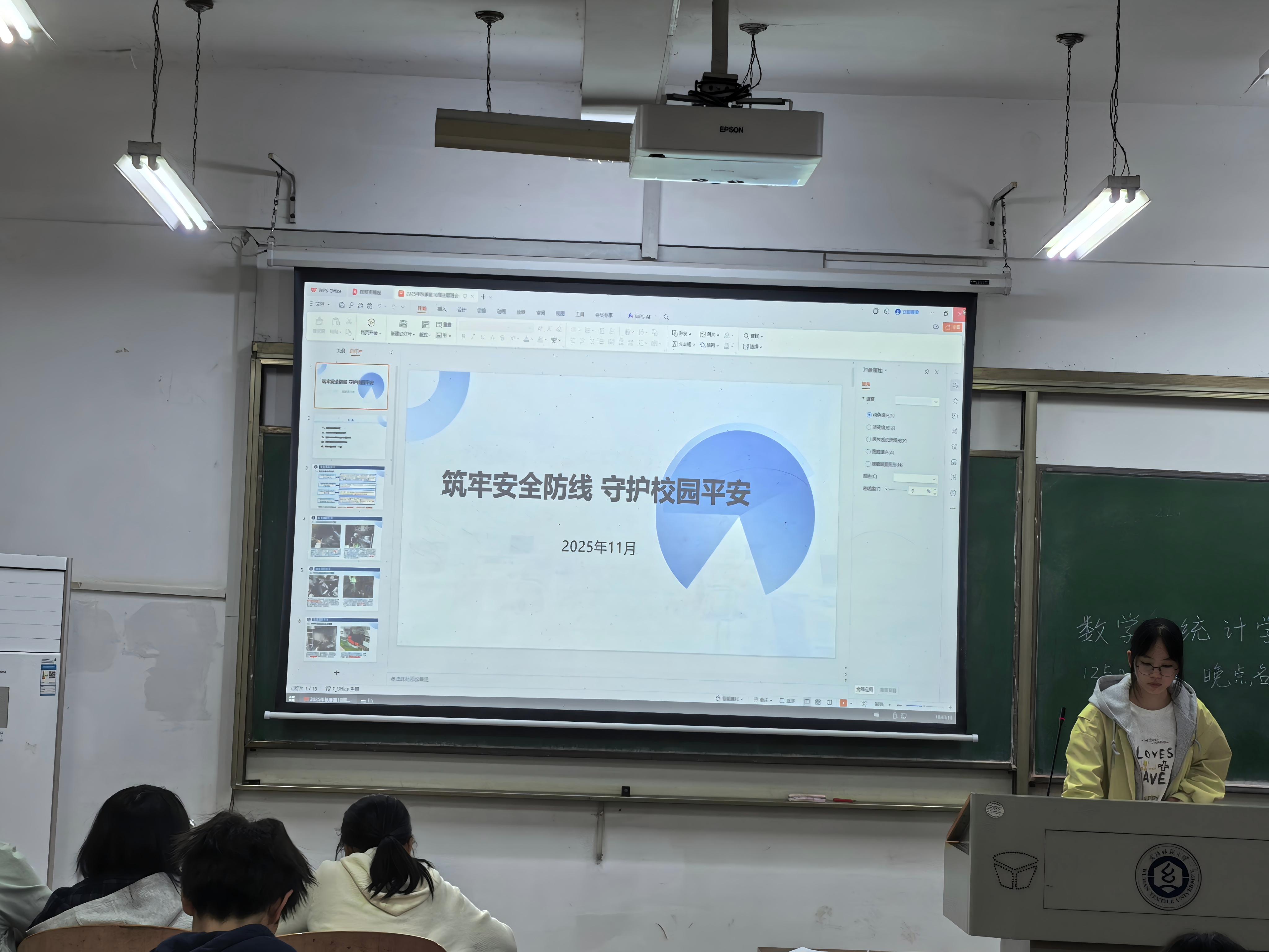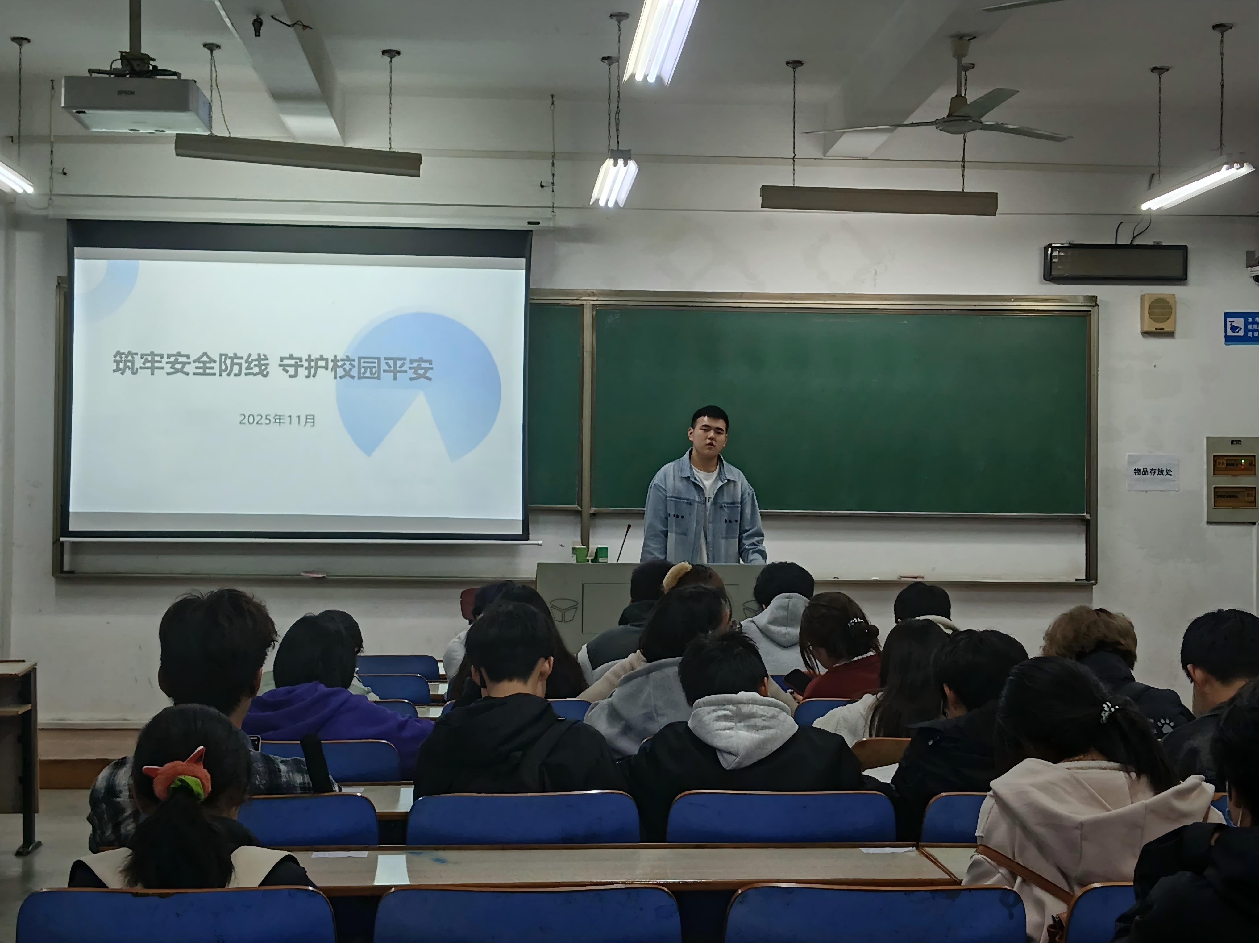 为进一步提升学生安全意识,增强校园安全保障能力,伟德betvlctor1946源于英国于2025年11月在崇志楼开展了以"筑牢安全防线 守护校园平安"为主题的安全教育班会。此次班会全体同学参加,班会由各班班长主持。