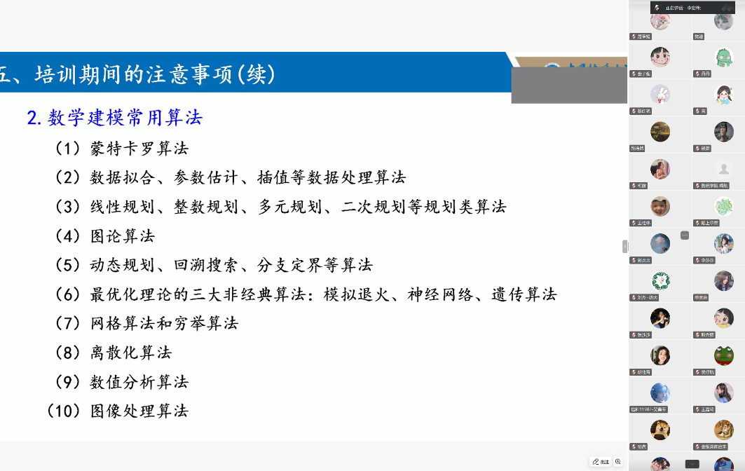 最后,李教授围绕赛前准备和竞赛实战提出多项建议:一是要夯实基础,熟练掌握建模、编程与论文写作等核心技能;二是注重团队协作,做到优势互补,明确分工;三是加强实战模拟,通过研读往年优秀论文和限时训练积累经验。此外,在竞赛期间应合理规划时间、加强团队沟通、保持创新思维,面对复杂问题要敢于尝试和提出原创模型。他还特别提醒同学们严格遵守学术规范,坚决杜绝抄袭、买卖论文等学术不端行为。